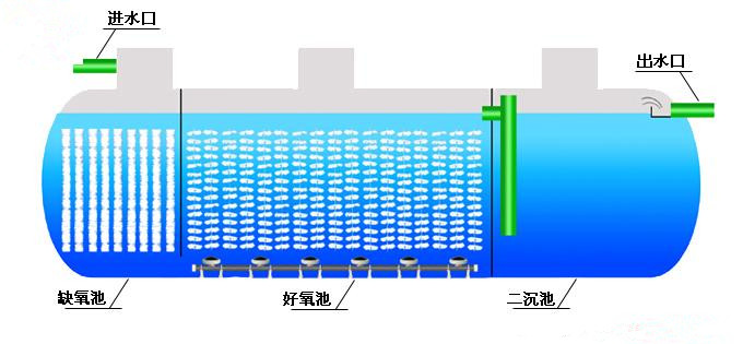 一體化污水處理設(shè)備是將一沉池、I、II級接觸氧化池、二沉池、污泥池集中一體的設(shè)備,并在I、II級接觸氧化池中進行鼓風(fēng)曝氣,使接觸氧化法和活性污泥法有效的結(jié)合起來,節(jié)省了找人設(shè)計污水處理工藝和做基礎(chǔ)建設(shè)的繁瑣。